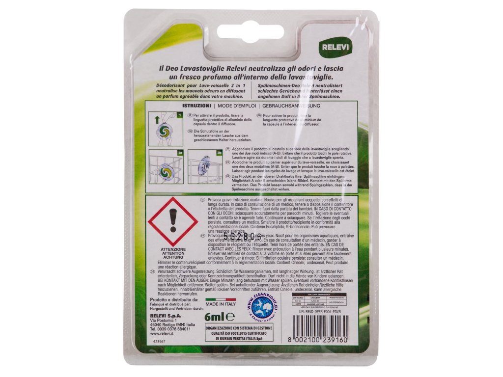 Relevi je už viac než 60 rokov európskym lídrom vo vývoji a výrobe ekologických čistiacich a hygienických výrobkov pre domácnosť pod vlastnou privátnou značkou. Poskytuje praktické inovatívne riešenia pre dezodoráciu interiérov domácností, vrátane vonných sviečok, kúpeľňových saponátov, repelentov proti moliam a insekticídov. Celá produkcia je vyrobená v Taliansku.